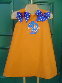 I love this dress. It looks really cute with orange shoulder bows but we used white for the picture.
